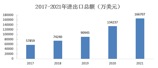 全年进出口总额16.67亿美元,比上年增长24.2%。其中,进口总额1.49亿美元,增长135.6%;出口总额15.18亿美元,增长18.7%。