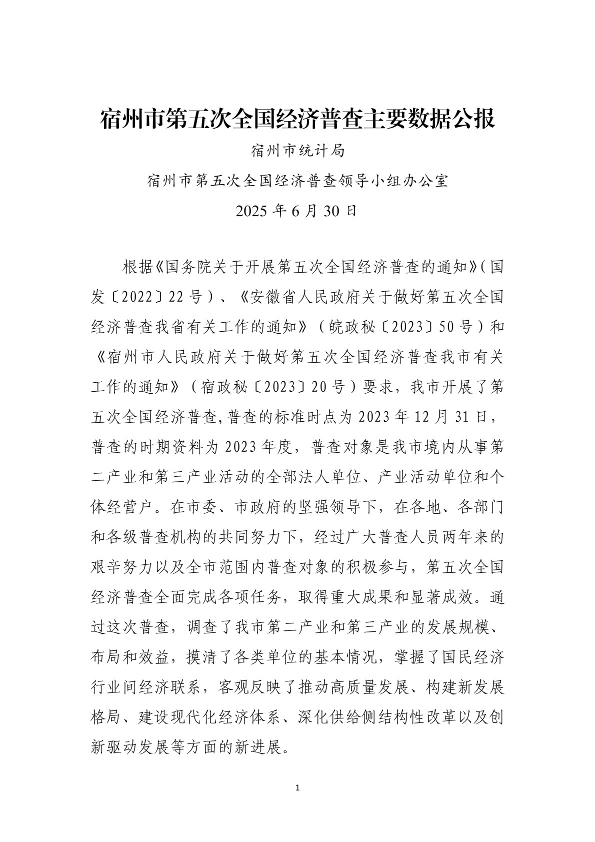 宿州市第五次全国经济普查主要数据公报