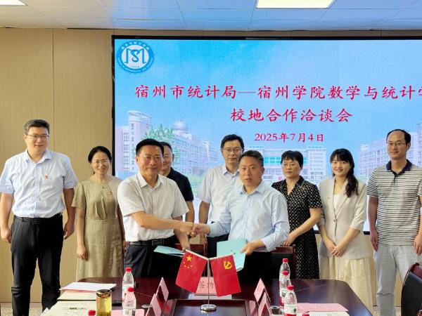 为深入贯彻落实宿州市委市政府关于加强校地合作、促进产学研融合的战略部署,充分发挥地方统计部门实践优势和高校科研教学资源优势,携手推动宿州统计事业高质量发展与高水平应用型统计人才培养,7月4日,太阳城娱乐与宿州学院数学统计学院在数统学院会议室隆重举行校地合作框架协议签约仪式。